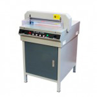 A guilhotina elétrica 450 é um excelente equipamento para trabalhos em graficas rápidas e copiadoras, rapida prática e de fácil operacionalidade conta ainda com dois sistemas de segurança, primeiro se você não pressionar os dois botões de acionamento ao mesmo tempo a lâmina não desce; segundo se a tampa de acrílico não estiver abaixada a lâmina também não desce, por estes dispositivos ela pode ser operada com maior segurança e tranquilidade.